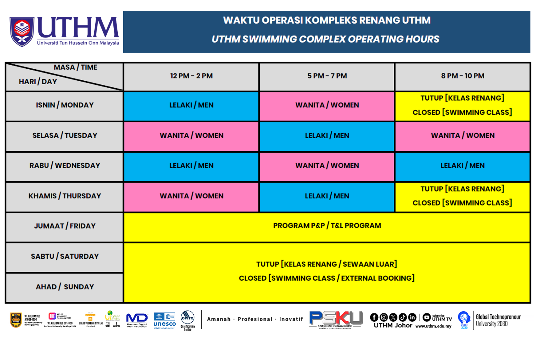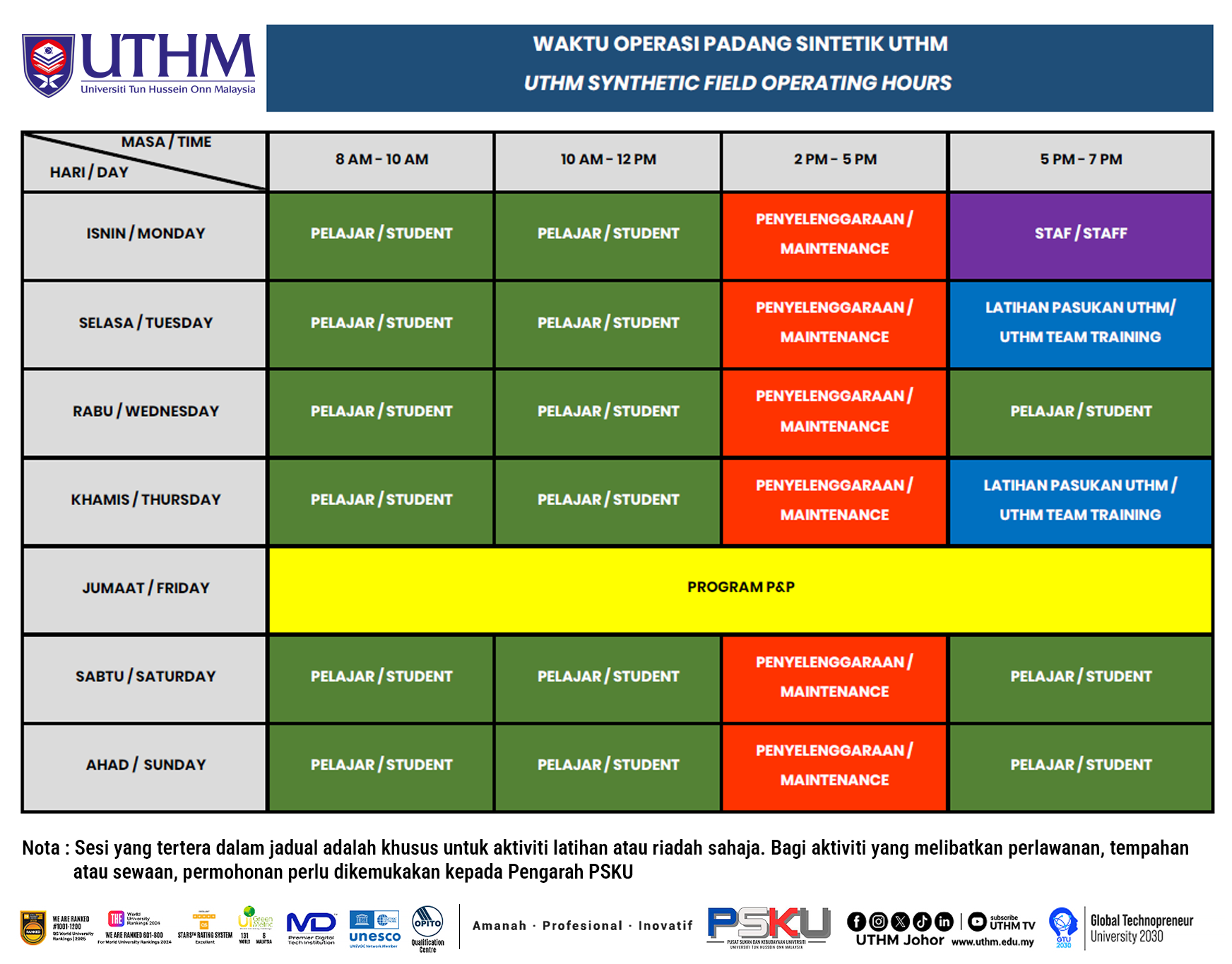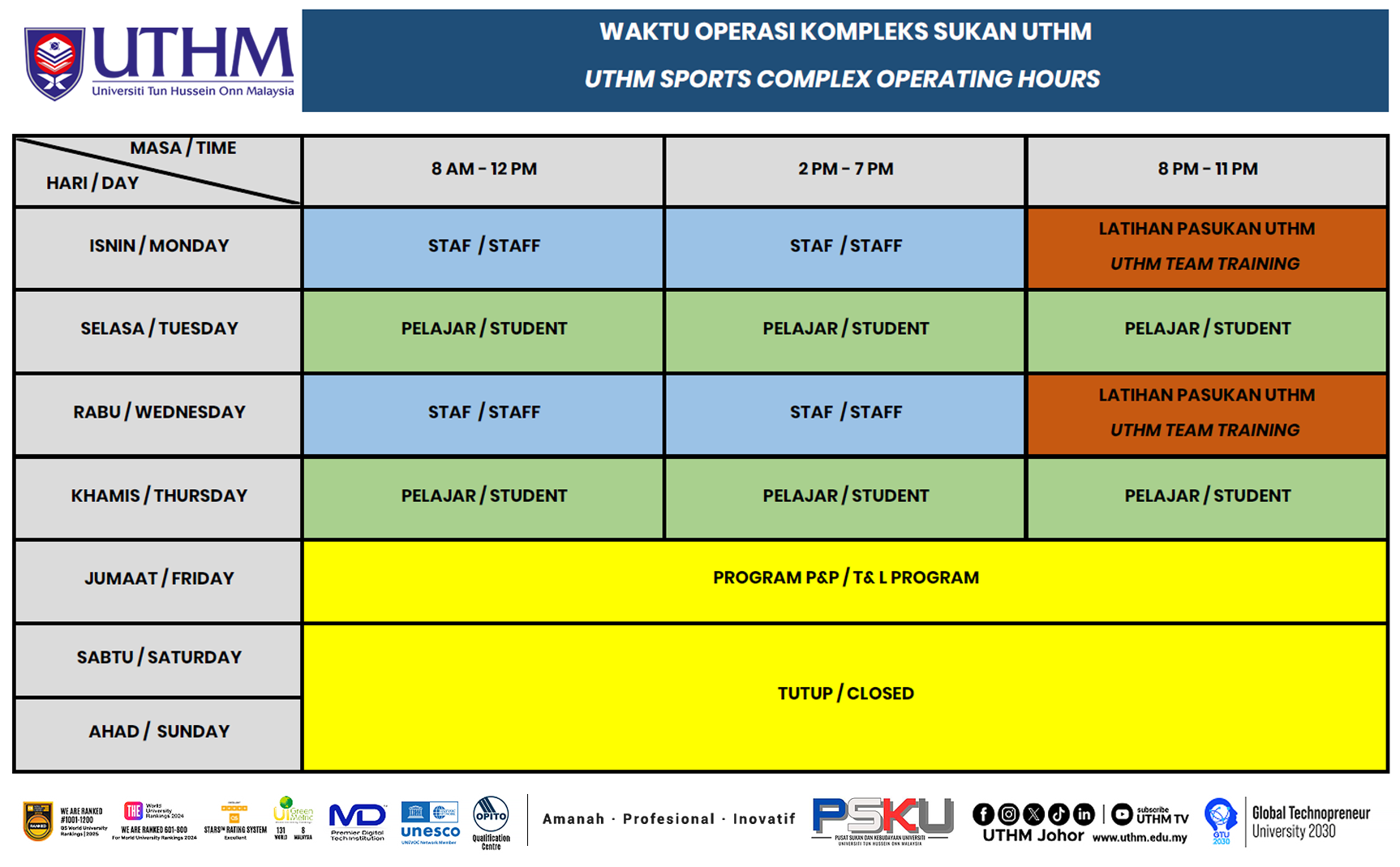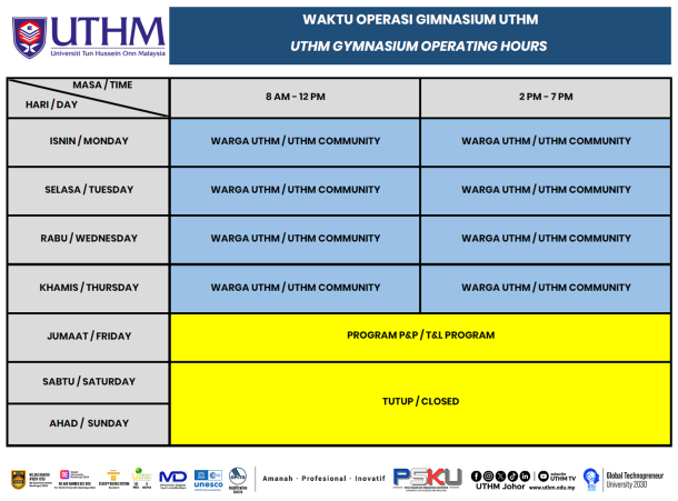 JADUAL WAKTU OPERASI FASILITI SUKAN